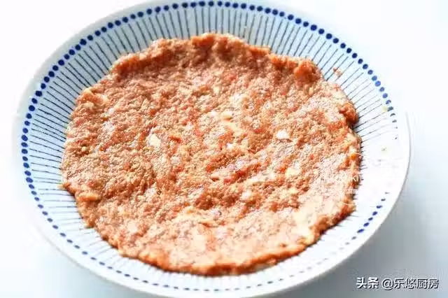 第七步:取另外一半的肉餡,團成一個小餅狀,如圖。