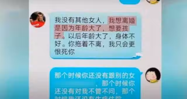 張海曾經跟楊楠說過:「我想離婚是因為年齡大了,想要孩子。」「你拖著不離,我只會更恨死你。」