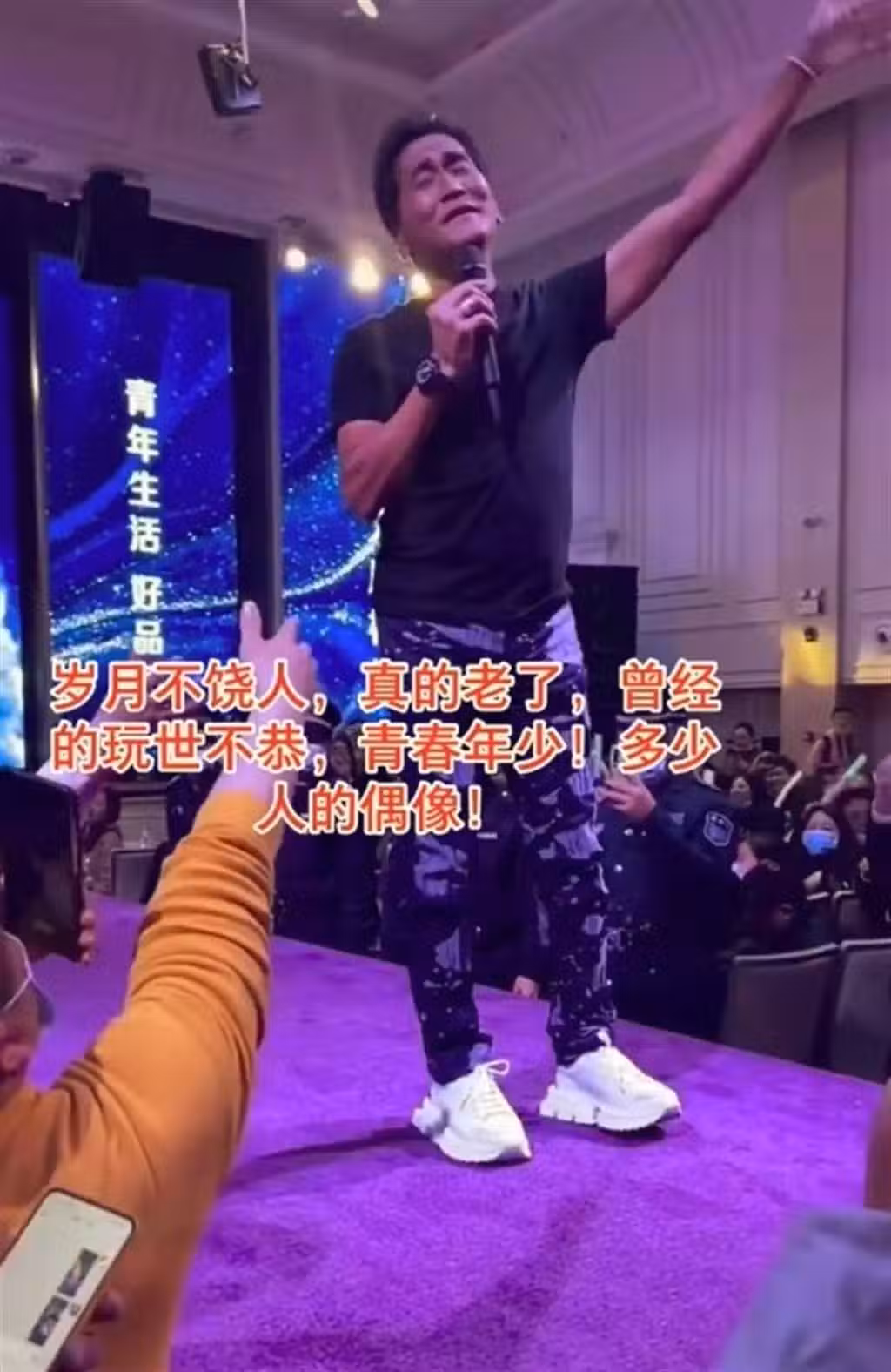 據《ettoday》報導,齊秦今年已經61歲,上月出席一場商演活動時,看起來不僅蒼老許多,連身材也略顯發福、挺出鮪魚肚,讓許多網友紛紛感嘆,和記憶中的形象差距甚遠!微博畫面中,齊秦拿著麥克風,穿著顯瘦的黑色上衣、迷彩長褲,卻遮掩不了突出的肚子,只見他熱情地和現場歌迷互動、露出燦爛微笑!