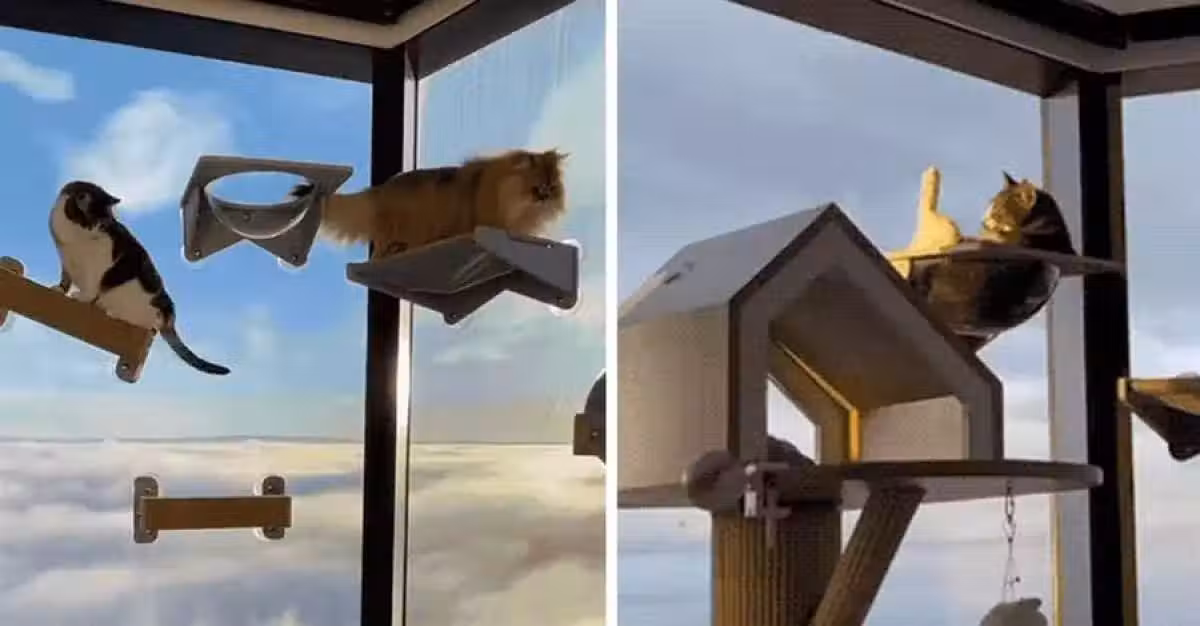 鏟屎官帶三隻貓咪住進「60層頂樓」被刷爆!網友們不禁感嘆:真實版「貓的天空之城」