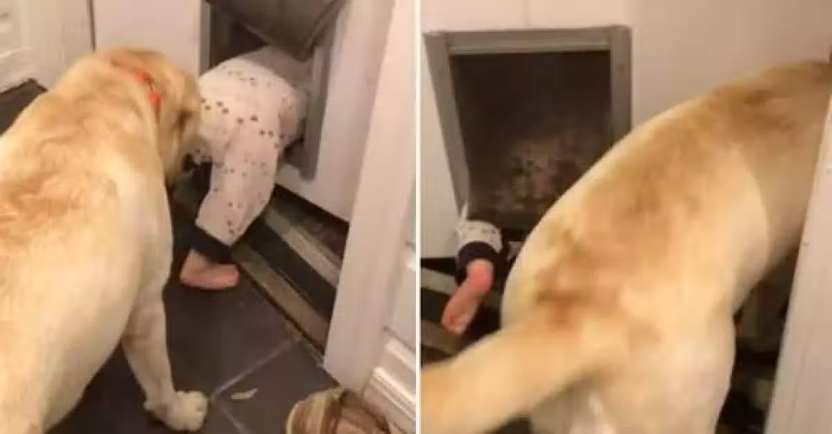 狗狗慫恿小主人「鑽狗洞」,結果自己大搖大擺走大門,汪:當人就是快樂~