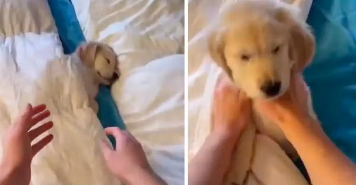 鏟屎官想帶小金毛去散步,可牠睡得「太熟了」,把牠扶起來最後又「倒下繼續睡」