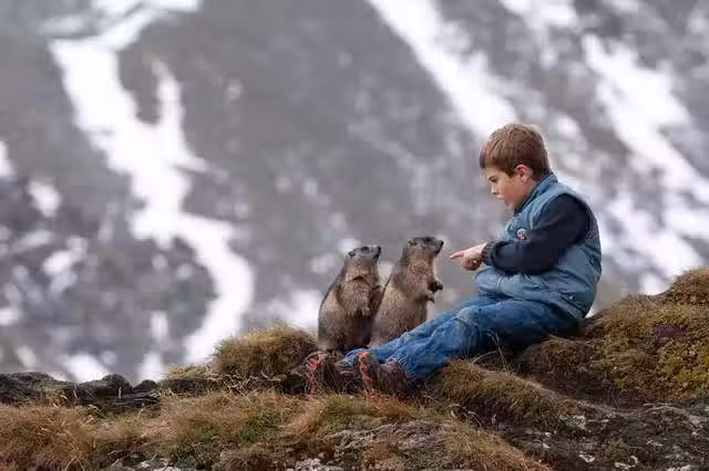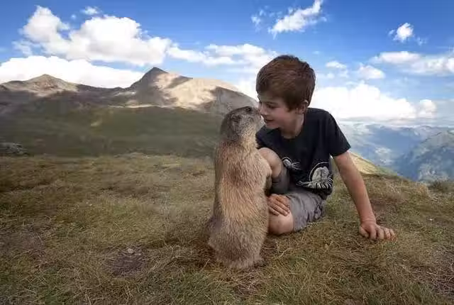 這個小男孩來自瑞士,他4歲的時候和爸媽一起在阿爾卑斯山玩耍,無意中認識了幾隻土撥鼠,結果他們結下了長達8年的友誼!