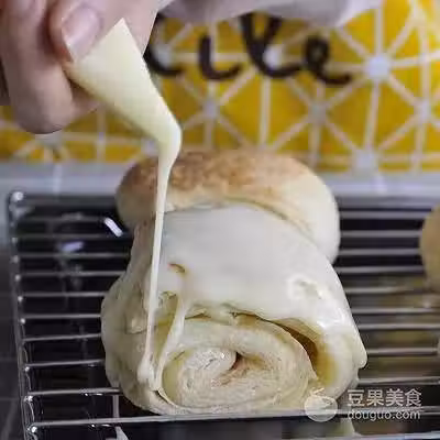12、將巧克力裝入裱花袋淋在麵包體上面。