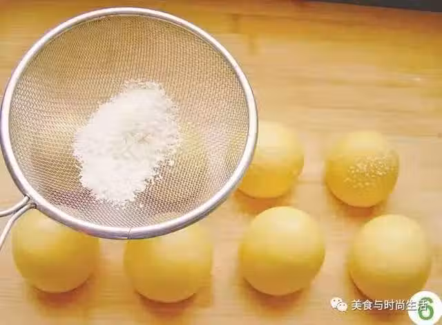 6 表面篩椰蓉,篩不到的地方可以滾粘一遍。