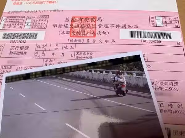 日前,在高雄保警單位服務的朱姓警官,在私人臉書PO出兒子的超速罰單,透露自己一大早就收到基隆警方寄來的紅單,拆開後發現是遠在基隆生活的兒子,騎著爸爸給他的機車,因超速而被罰了一張1400元紅單。