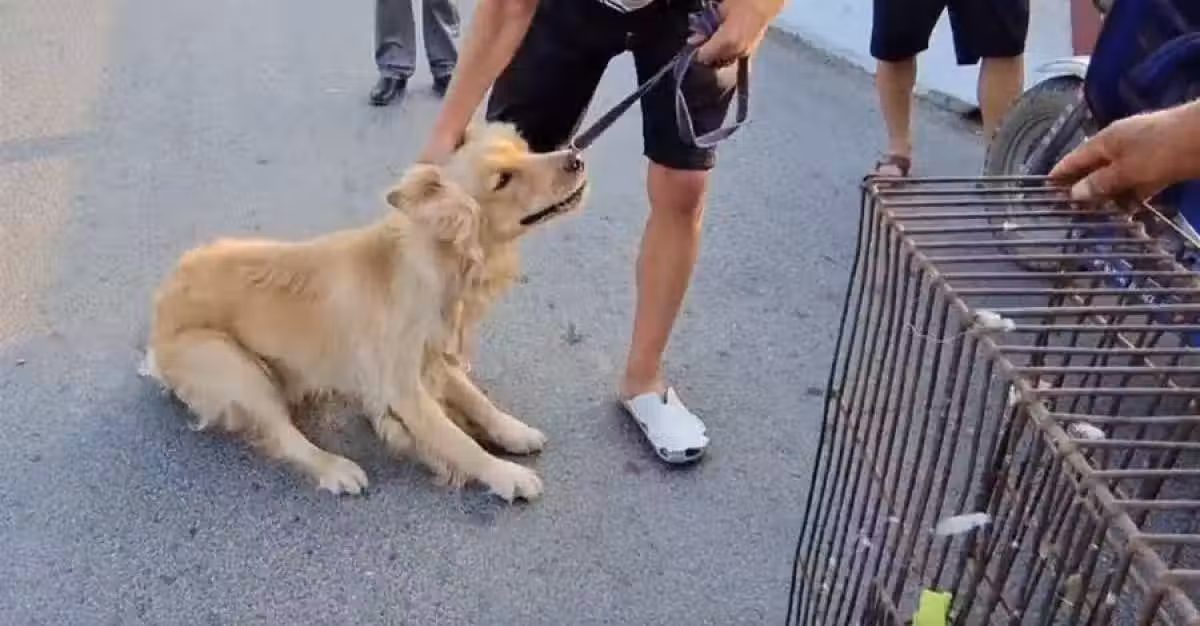 主人為了錢把金毛送上狗肉車,金毛聞到同類氣味開始反抗,還好遇陌生人將狗拯救