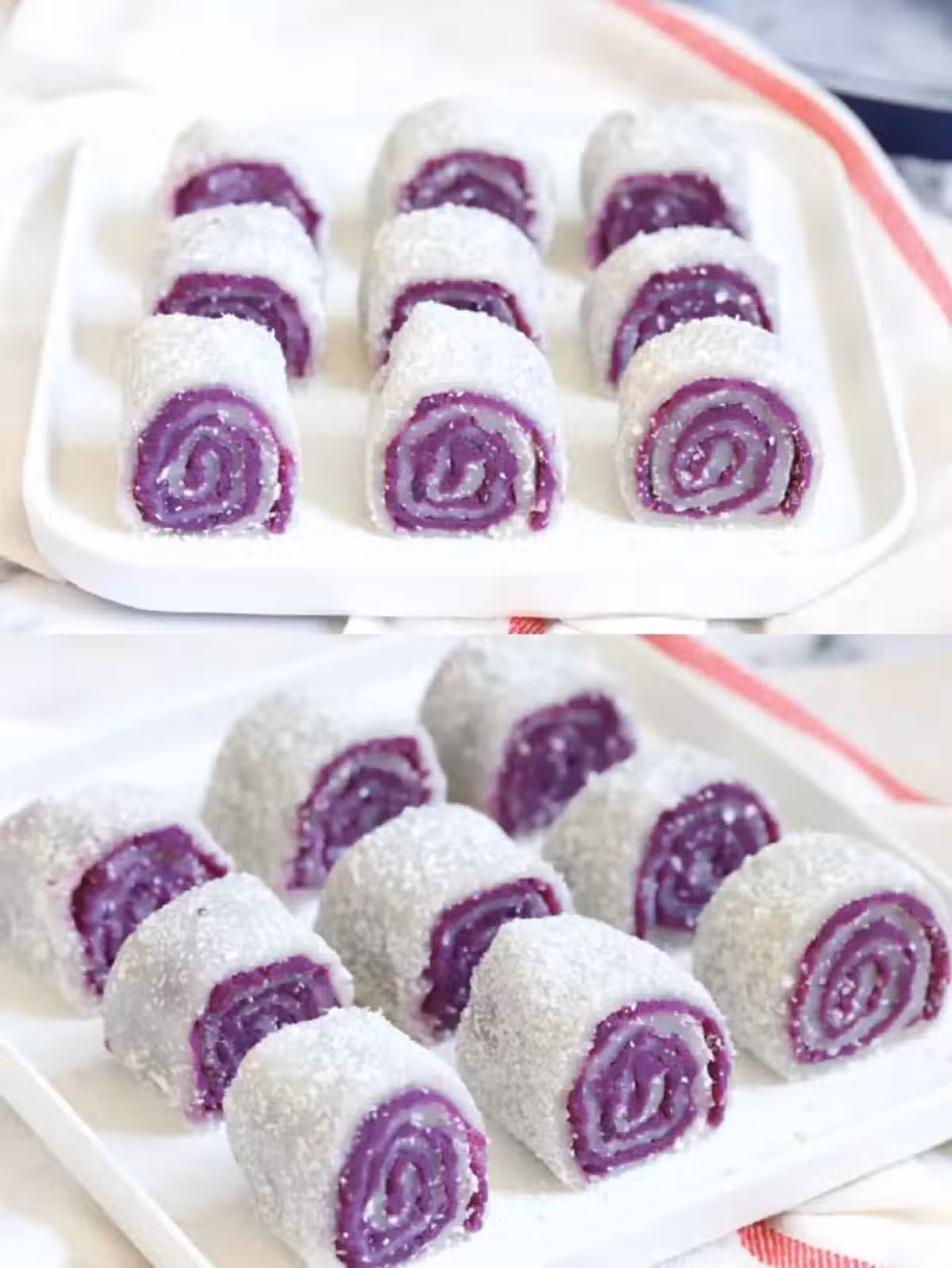 食材:糯米粉 200g/清水 200g/白糖 40g/紫薯 200g/牛奶 3勺/椰蓉 適量