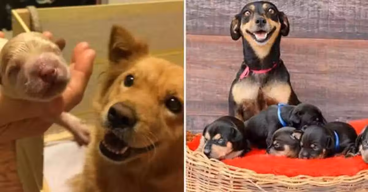 14隻狗媽媽和自己孩子的照片,畫面暖化了,它們滿臉都寫著驕傲:我生的!
