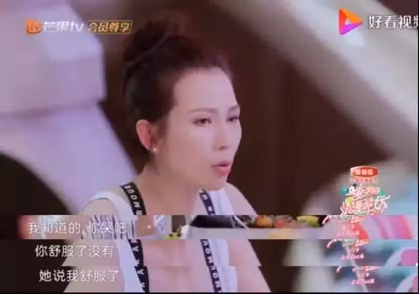卻沒注意到小女兒一直在喊媽媽。小女兒生氣了,開始發脾氣、大哭,蔡少芬趕緊在旁邊一直道歉,撫摸著小女兒的後背,對她說:「我知道你不開心了,你哭吧。」小女兒哭了一會,她又問女兒:「你舒服了沒有?」小女兒回答:「我舒服了。」