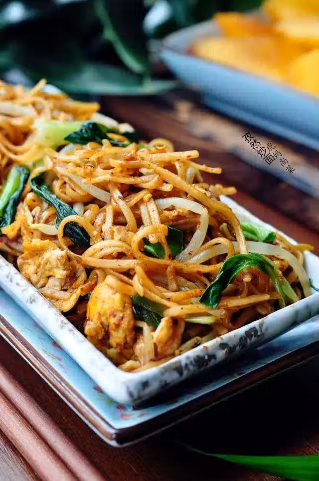 掛麵做的,煮麵的湯最好別倒,搭配炒麵一起吃,不噎人還原湯化原食。
