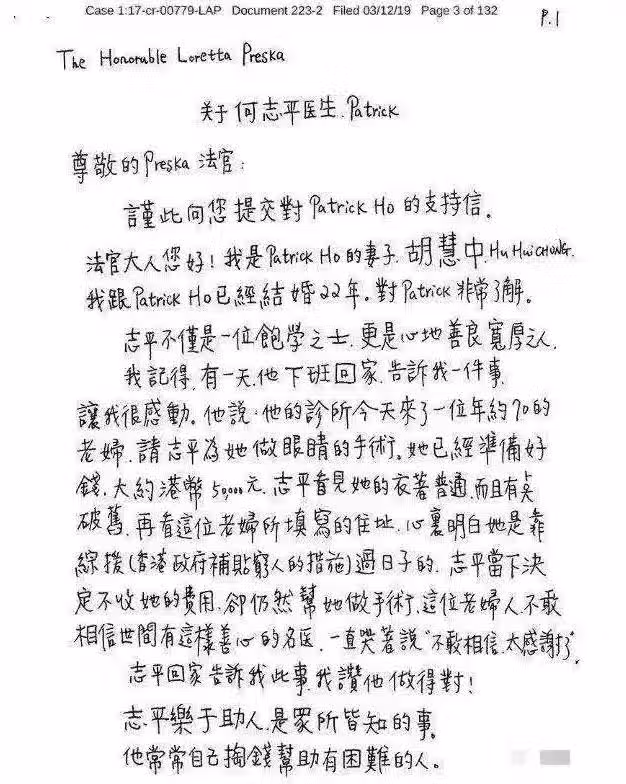 她親手向法官寫了一封求情信,信中強調丈夫何志平是一位飽學之士,更是心地善良、寬厚之人。