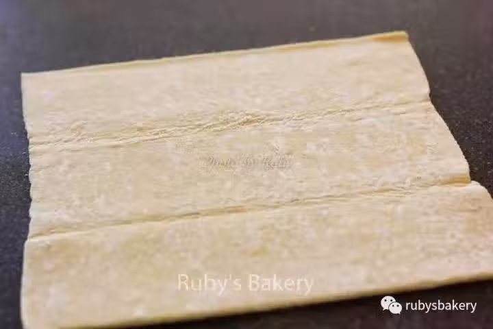 5.買的酥皮裡面有2張皮。每張皮約9×9inch,解凍好的皮,用擀麵杖稍微擀薄成12×12inch