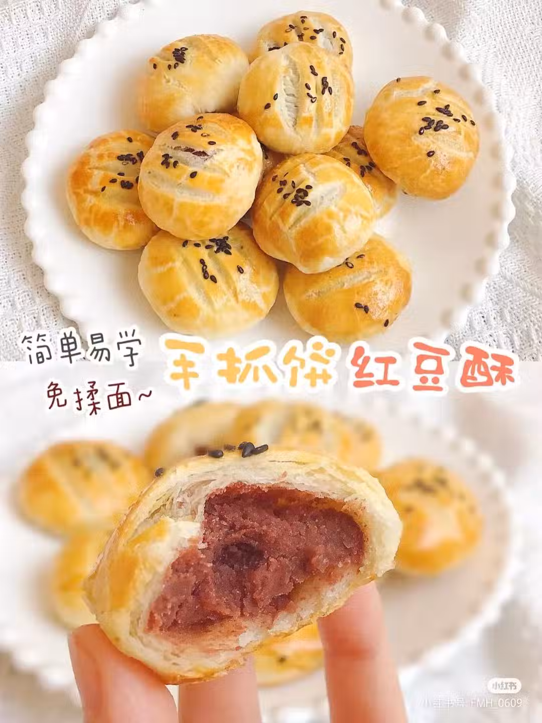 手抓餅N種做法丨免揉面懶人版紅豆酥
