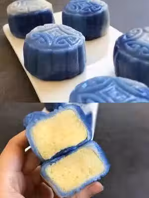 所需材料:蝶豆花2克、糯米粉50克、粘米粉50克、澄粉30克、玉米油30克、牛奶/蝶豆花水各90克、糖粉30克、豆沙餡、椰子油(可選)凃模具