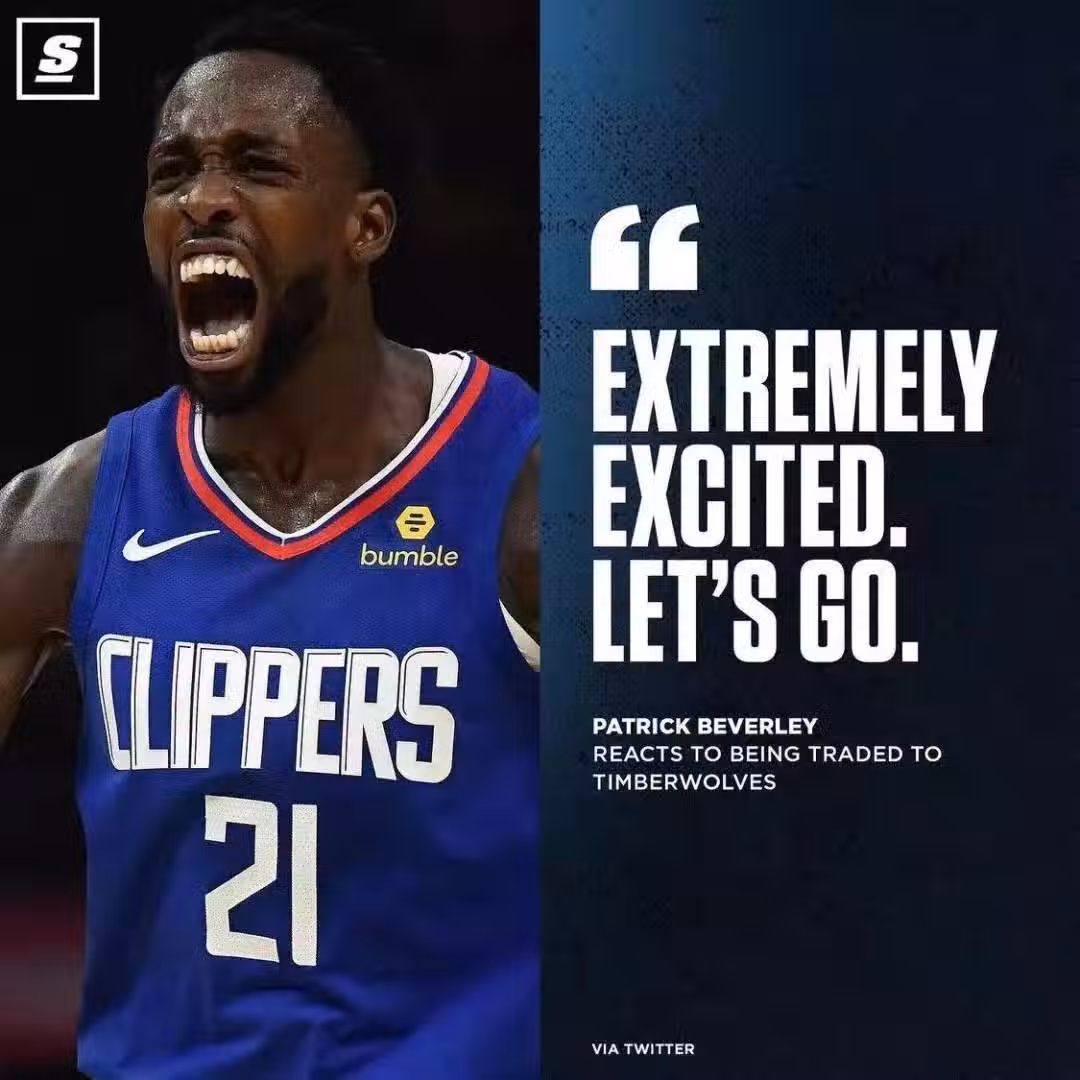 一天輾轉3支球隊,還特麼被當做備胎,可貝弗利依然看起來很樂觀,發推談到自己被交易到森林狼:非常高興,讓我們加油!