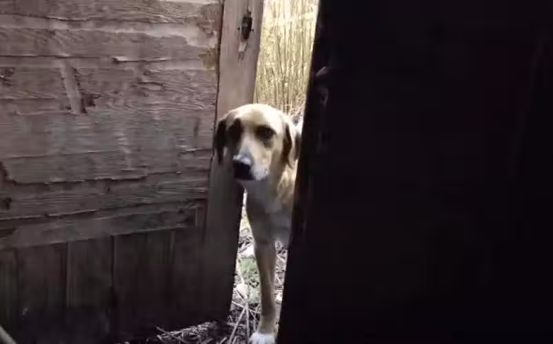 也許是見到女子一直沒有理解自己的意圖,狗媽媽乾脆往老屋走去,每走幾步,就回頭看看女子,尾巴也搖得更快了。