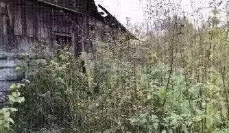 只是狗媽媽似乎對食物沒多大興趣,反倒是一直在那兒來回踱步,並對路旁快要被雜草遮掩的老屋很上心。