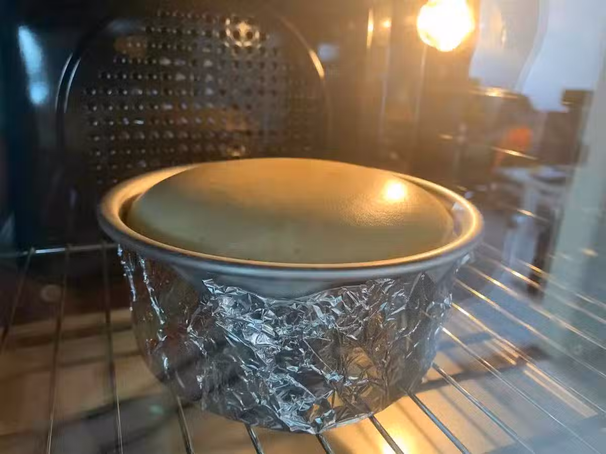 5、倒入6寸模具,放入預熱好的烤箱145度50分鐘。