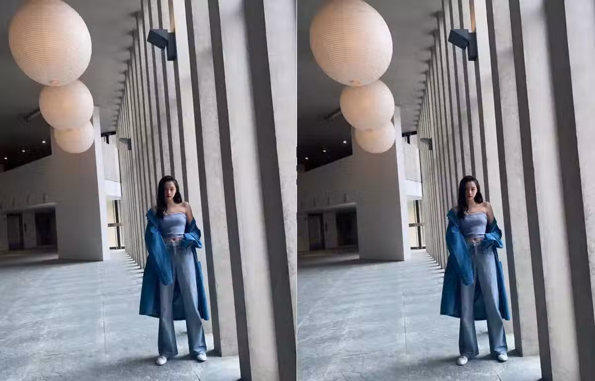 如果各位穿了牛仔的抹胸背心,那各位就可以搭配高腰的牛仔闊腿褲,闊腿褲有多好穿在這裡就不跟大家普及了,各位只需要問問各位身邊的梨形身材的女生,她們就全都會告訴各位,特別是高腰的版型,搭配露肚臍的背心簡直就是yyds。