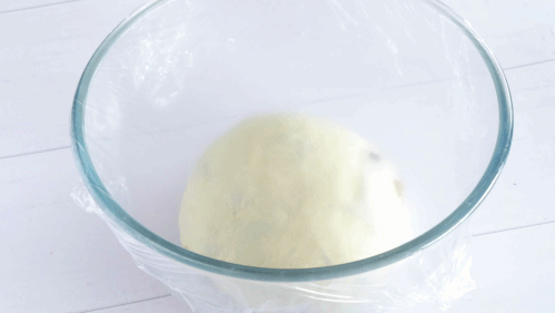 8、輕輕的把洋蔥揉進面團里,然後蓋保鮮膜室溫(25℃)發酵。