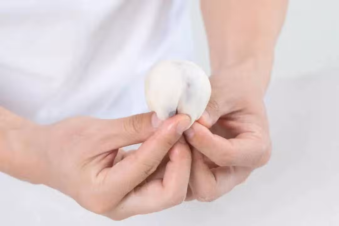 15、收口朝下,手掌起空扣住面團,然後滾圓。