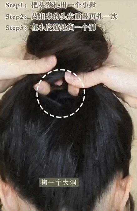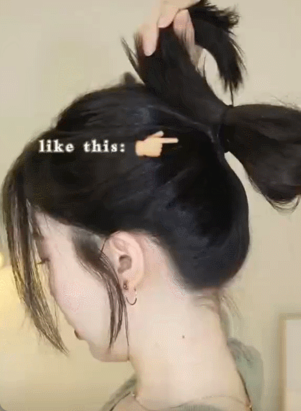 在丸子頭 中間輟一個小洞,然後讓頭髮從中間穿過,胡蝶結形狀就更結實了!