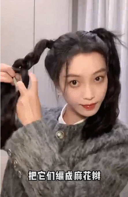 然後再把馬尾 編成麻花辮。