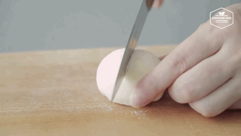 糯米粉中加入糖與鹽攪拌均勻,然後倒入煮沸的水攪拌均勻。也可以換成煮沸的牛奶哦~