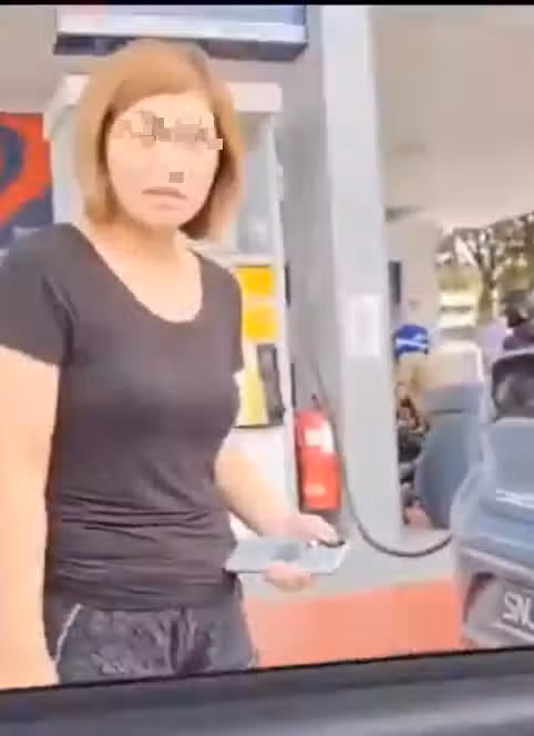 一對男女開著新加坡轎車到大馬加油站添購RON95津貼汽油,結果遭到大馬男子的制止。(社媒X截圖)
