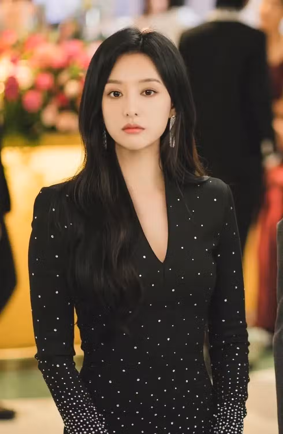 為了展現財閥千金的奢華氣質,金智媛選擇BALMAIN水鑽漸層短洋裝現身,微低胸設計隱約展露性感的一面,卻不會過於誇張,更彰顯出傲氣女王的姿態。