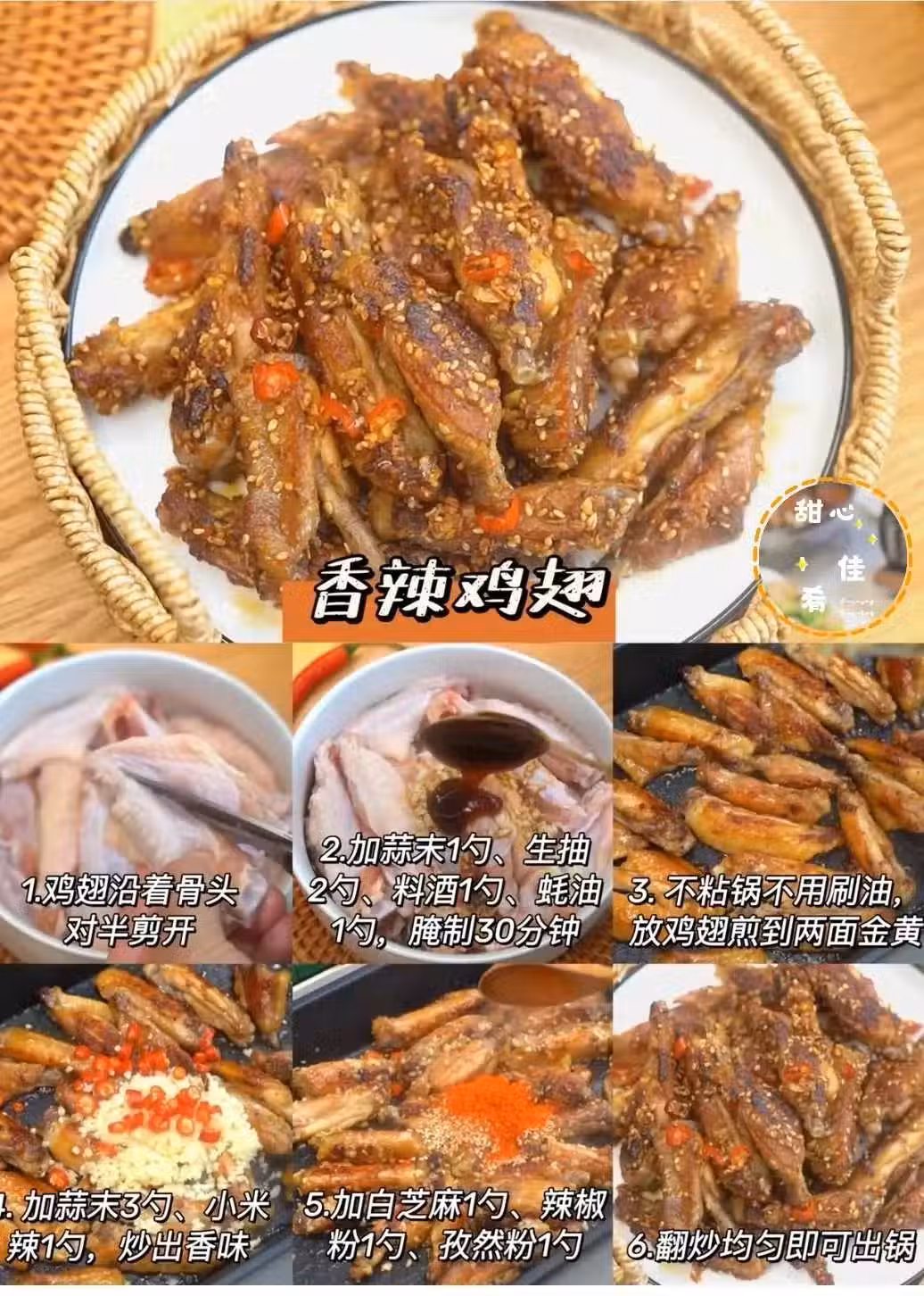🥣配方:雞翅12個、蒜末4勺、生抽2勺、料酒1勺、蚝油1勺、小米辣1勺、白芝麻1勺、辣椒粉1勺、孜然粉1勺