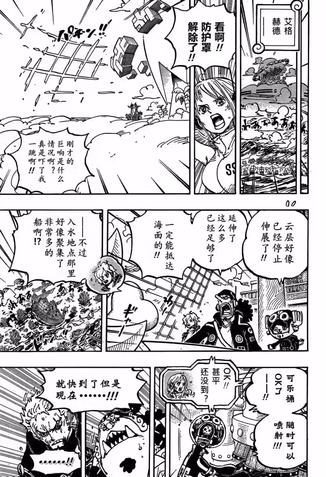 在蜂巢島上,一群海賊正在談論貝加龐克所說的事情,寶藏就在海底,他們想去海底尋寶。其中兩個老熟人出現,他就是傳說中的阿金,這傢伙時隔26年終於出現了,還有克里克等人,他們都加入了黑鬍子海賊團。在偉大航路,大猩猩和猴子仍在打撈船隻,在海軍醫院裡,特殊部隊成員已經回來,他們正在養傷,還討論貝加龐克所說的真相。