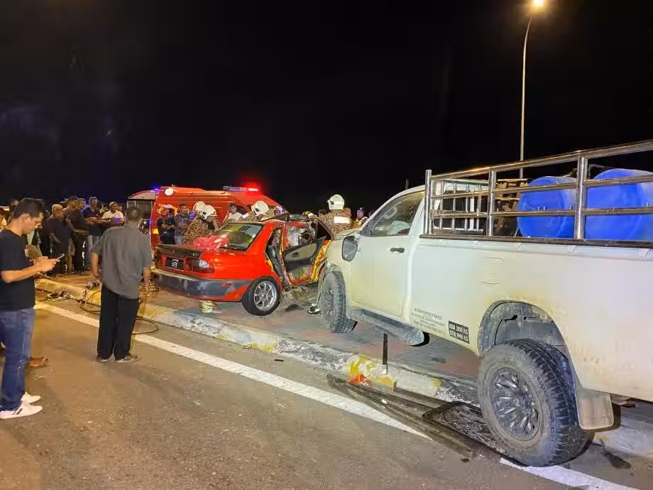 另外,彭亨消拯局較早前發出文告指出,該局接到投報後趕到現場,並發現5名男女被困在車內動彈不得,其中有1男1女被夾斃在車內,消拯人員使用各種工具把5人移出車外。