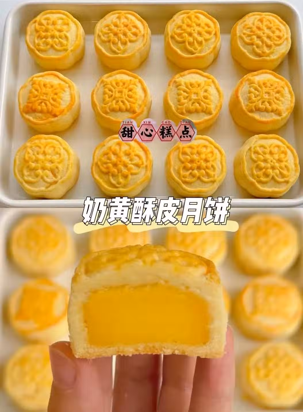 被家人夸爆的奶黃酥皮月餅🥮今天給大家安排上啦~香酥掉渣的曲奇酥皮➕搭配奶香濃郁的奶黃餡,不甜不膩超級好吃😋附上詳細做法,給家人安排起來吧~