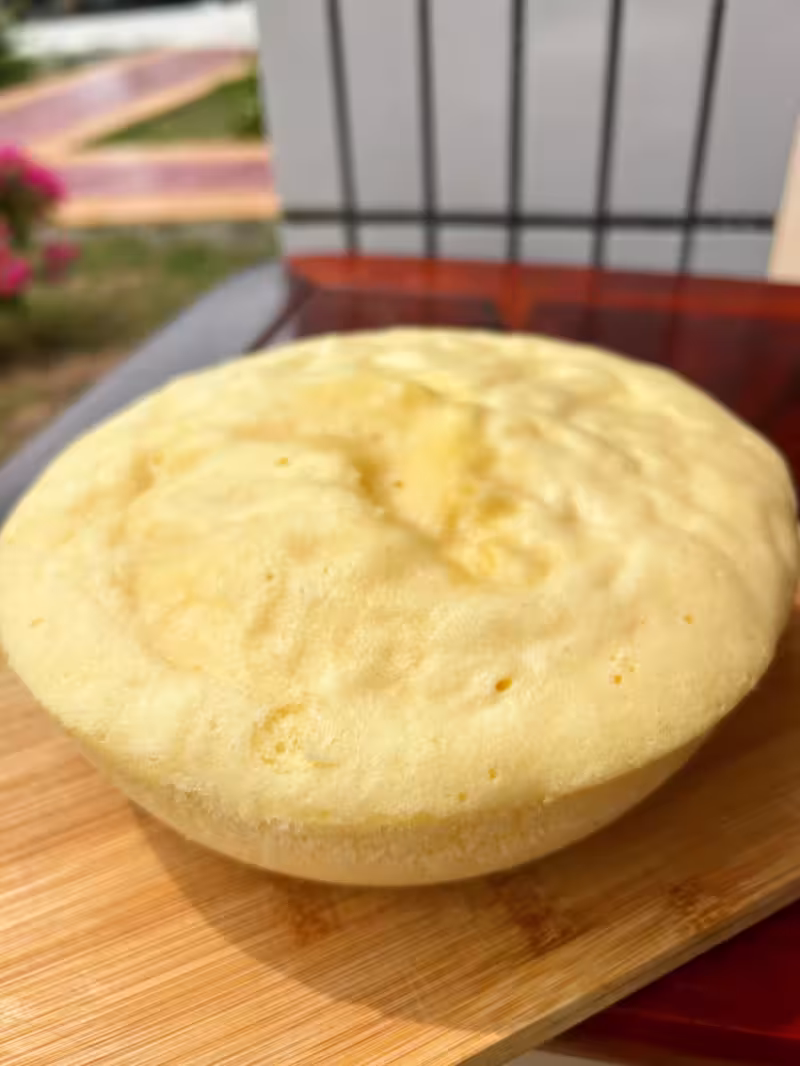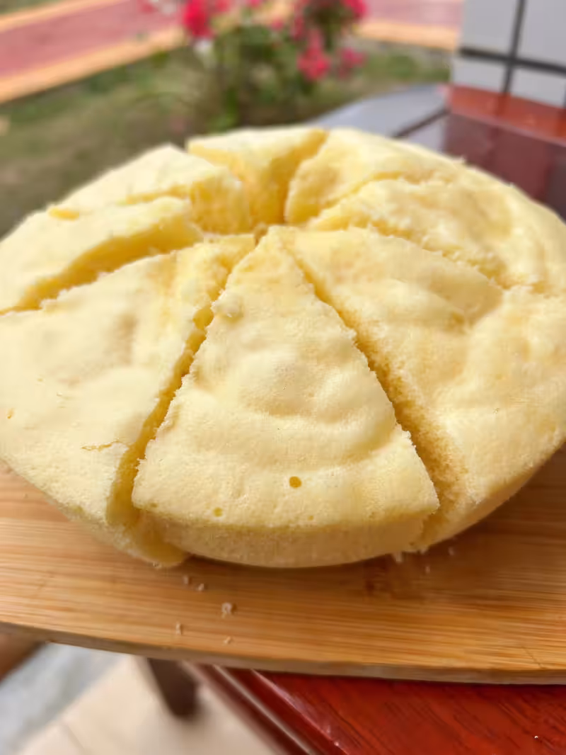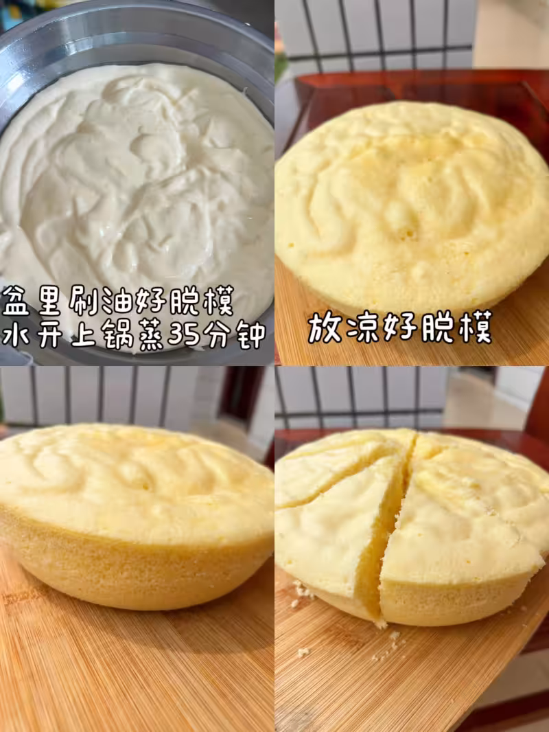 蒸的時候用濕毛巾把鍋蓋的孔都遮住,避免水滴到蛋糕,我這個中間就有水滴到了。
