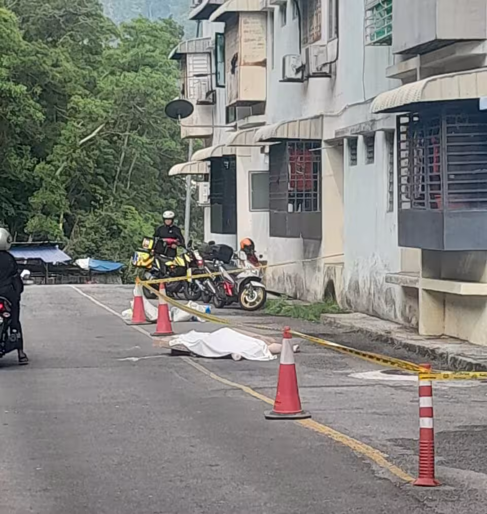 這起墜樓案是於周三(23日)早上9時05分,在檳島發林一座公寓發生,死者臥屍公寓底層,引起居民議論紛紛。