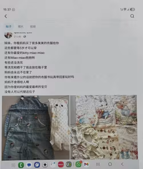 (吉隆坡11日訊)「吉膽島碼頭母女墜海亡」案;女死者曾在社交媒體透露輕生念頭,嚇得丈夫一時不敢讓她和女兒見面!