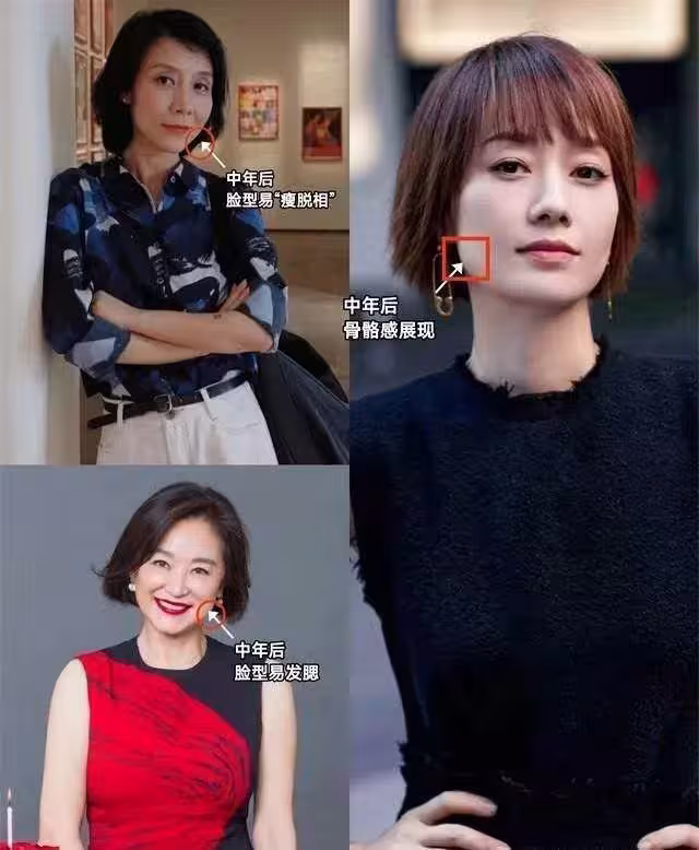 又或者還有一部分的中年女人中年發福,臉部的發腮問題明顯,若是髮型選錯了更容易放大面部的留白,顯得臉大。