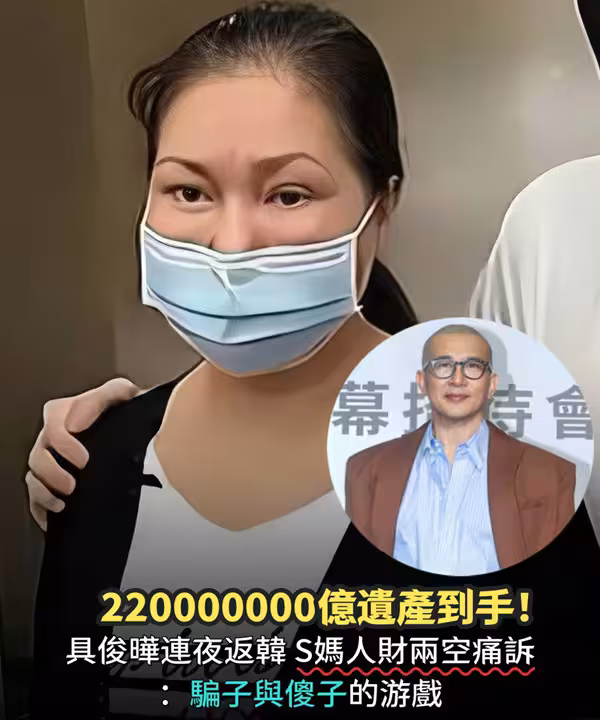 遺產分配案塵埃落定,具俊曄成為大贏家,分到了大S遺產6.5億的1/3,近2.2億新台幣(約人民幣5100萬)S媽成為最大輸家,分文未獲。