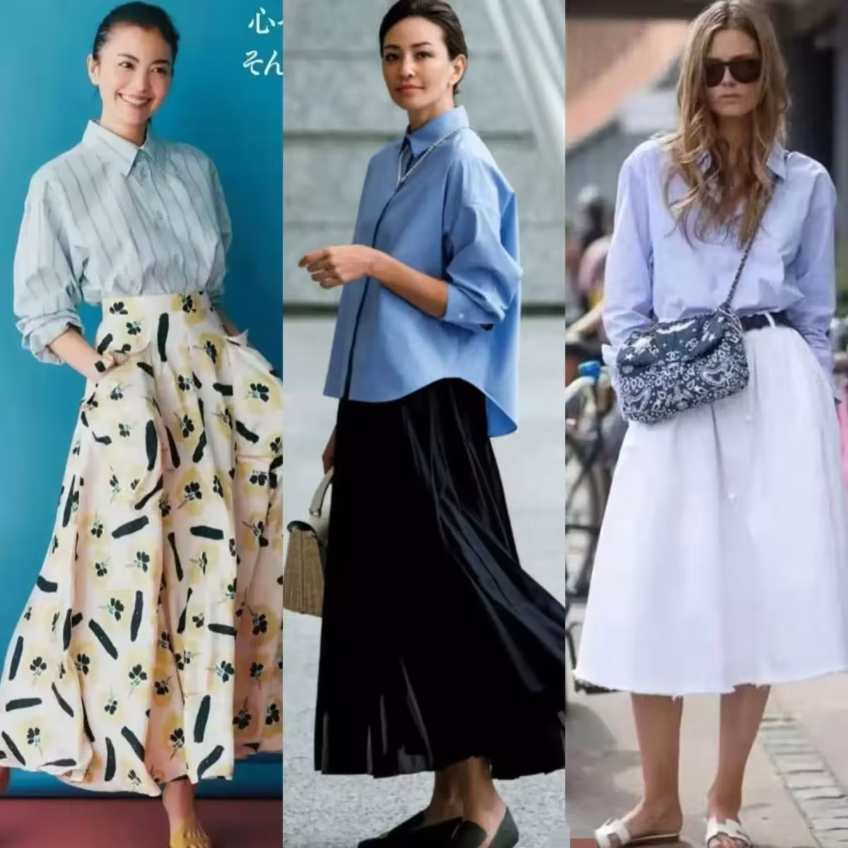 襯衫的利落清爽,傘裙的浪漫女人味,二者相遇,便是一場爽利與溫婉的美學對話。