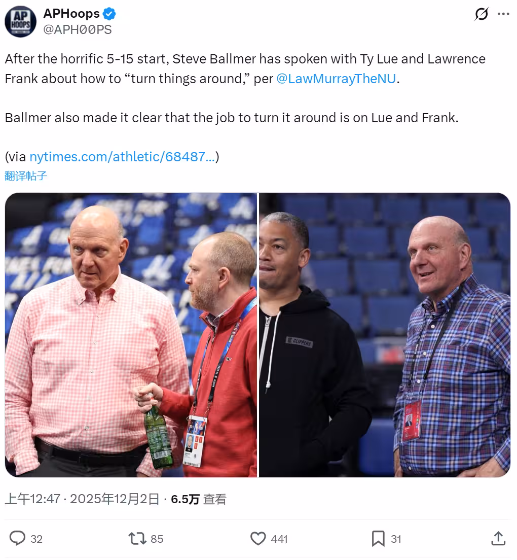 鮑爾默明確表示,弗蘭克和泰倫盧必須承擔各自的責任,快船能否扭轉頹勢就看他倆了。剛剛過去的11月份,快船2勝13負。快船上一次單月輸掉13場,還要追溯到2010年3月。ESPN最新報道,NBA各隊感到恐慌,因為雷霆擁有快船的首輪簽。