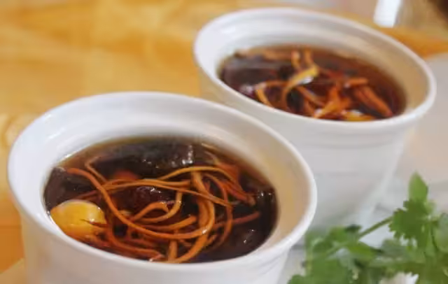 主料:干蟲草花、山藥、栗子、紅棗、蓮子、干茶樹菇、薑片